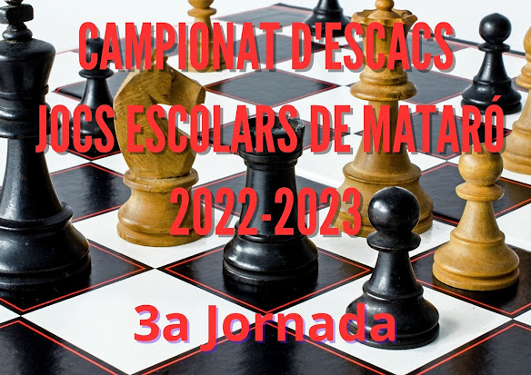 Aquest dissabte passat es va dur a terme la 3a Jornada del Campionat d'Escacs dels Jocs Escolars de Mataró 2022-2023.