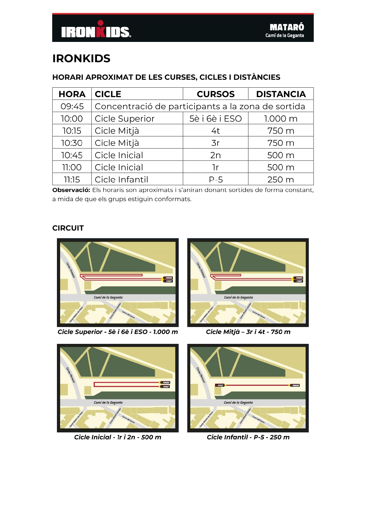 Dissabte 21 d’octubre, en jornada matinal al Camí de la Geganta de Mataró, tindrà lloc una nova edició de l’IRONKIDS.